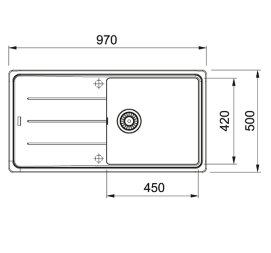 Spodní skříňka 600.00 mm Ventil 3 1/2'' sítkový Délka 970.00 mm Šířka 500.00 mm Rozměr dřezu 450.00 mm Rozměr dřezu 420.00 mm Hloubka dřezu 190.00 mm Výřez 950.00 mm Výřez 480 ...Více informací