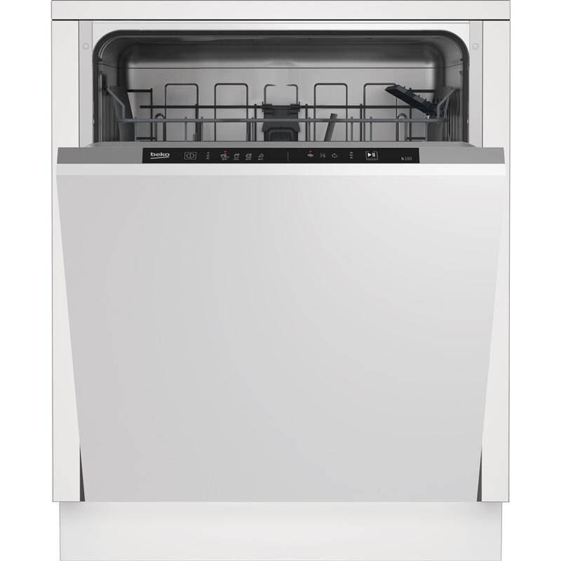 Plně vestavná myčka s integrovaným panelem Beko DIN34320 zvládne umýt 13 sad nádobí. Disponuje 4 programy a 4 teplotami. Dosahuje šířky 60 cm, je zařazena do energetické třídy E a má hlučnost 49 dB. Displej zobrazí zvolené nastavení. Odložený start je možné nastavit na 3, 6 nebo 9 hodin.